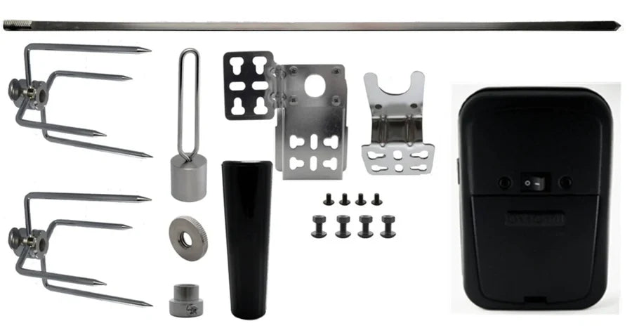 Included in the Kit: Cordless Rotisserie Motor, Spit, and Forks